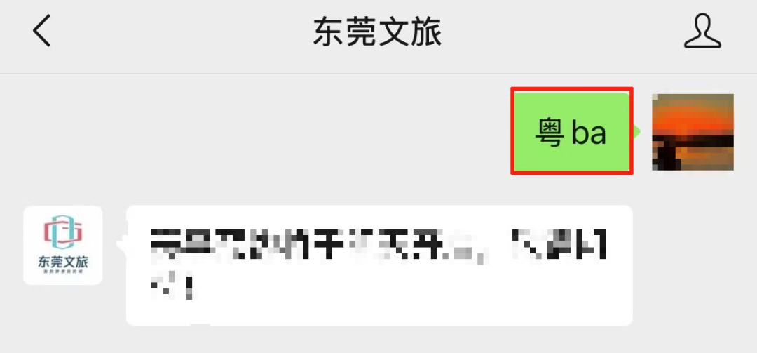 ①点击“私信”,对话框输入并发送“粤ba”获取购票链接。